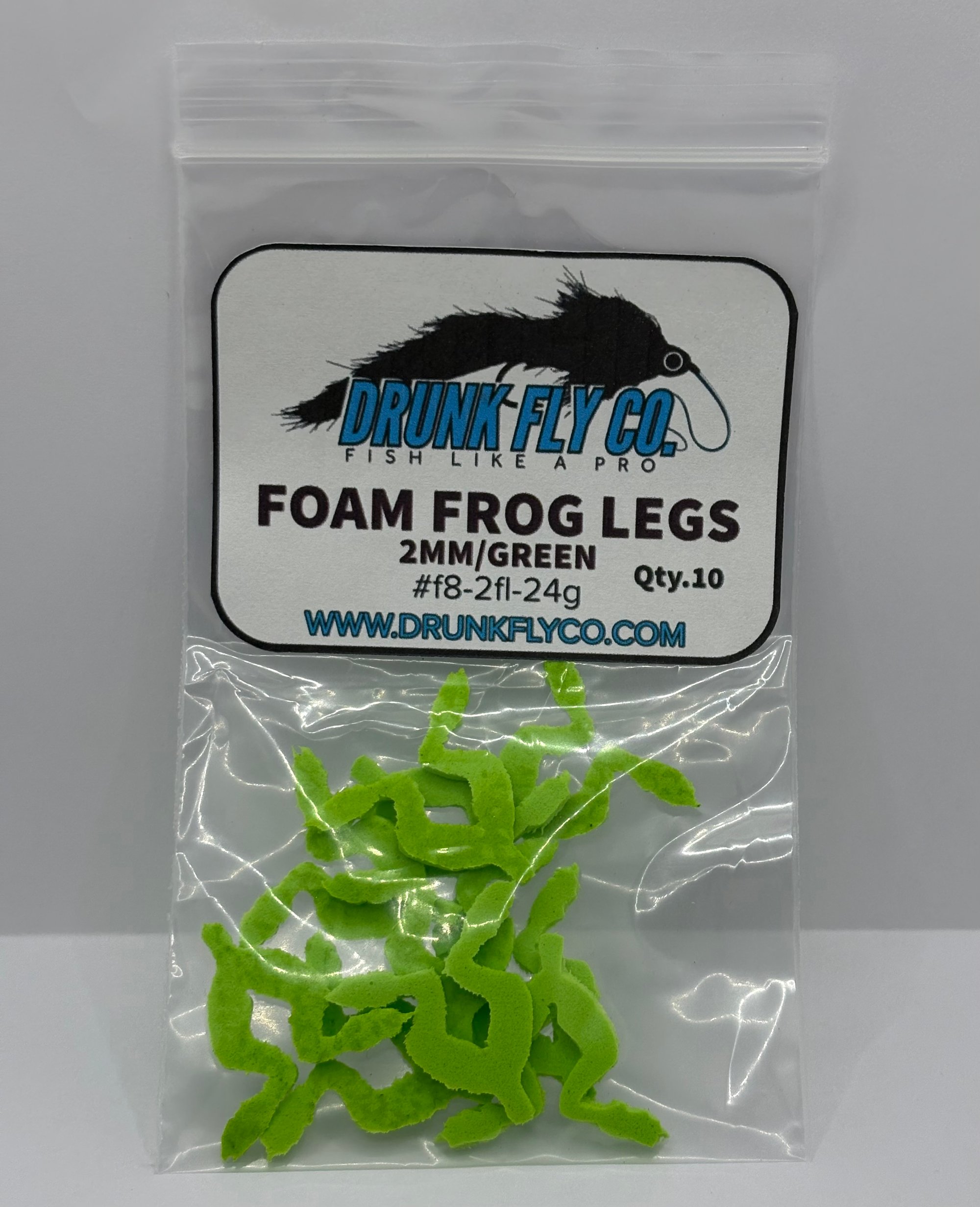 Green 2mm Foam Frog Legs precut to assist in the tying of frogs .